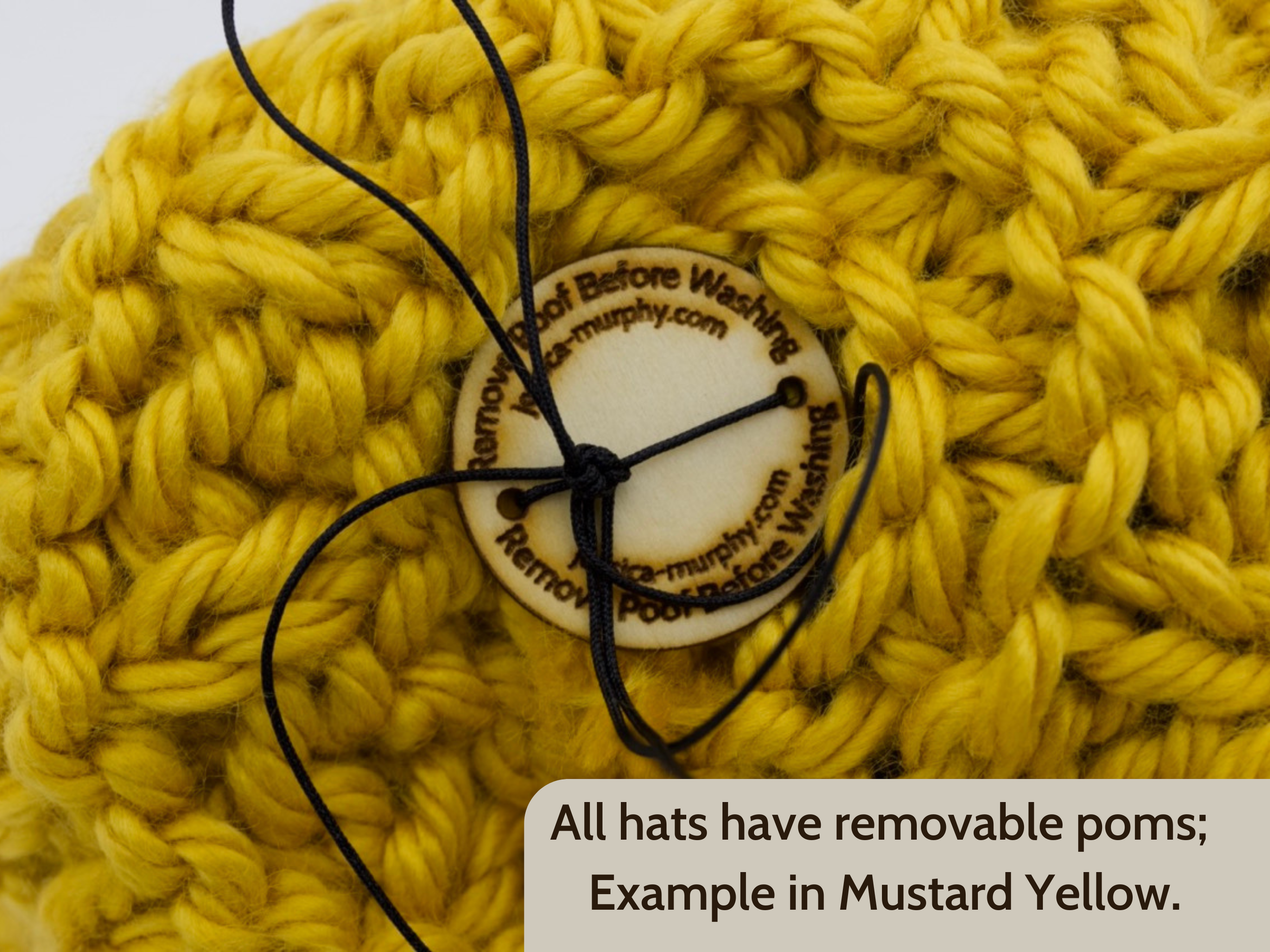 Each hat and pom are handmade and will vary slightly from item to item; exact colors may appear differently on different screens / monitors.
